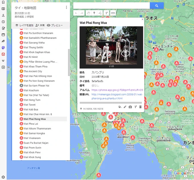 | 16日 | Google My Maps をほぼ作り直している、サムネイルも同時にアップしてるんだがアップ後、1枚づつ手作業、どうにかならないものか?私がやり方を知らないだけ? | |